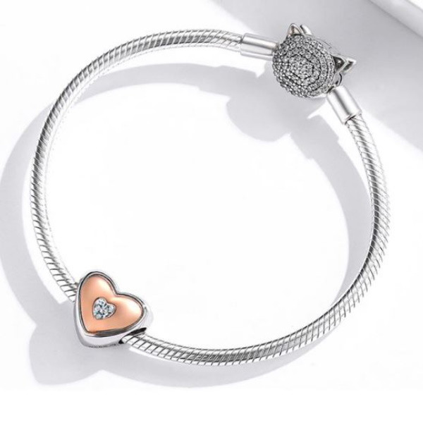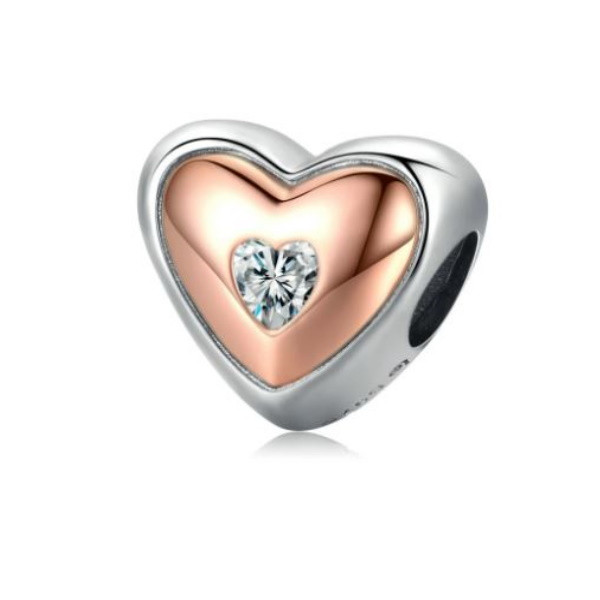 Strieborné kúzlo, srdce, ružové zlato