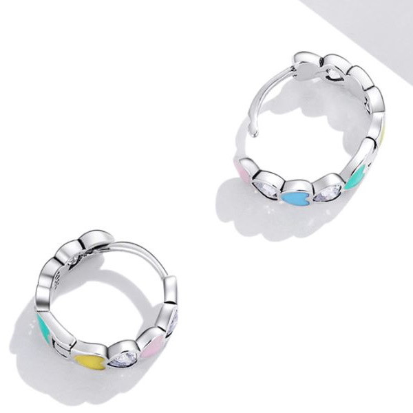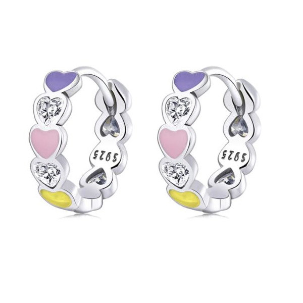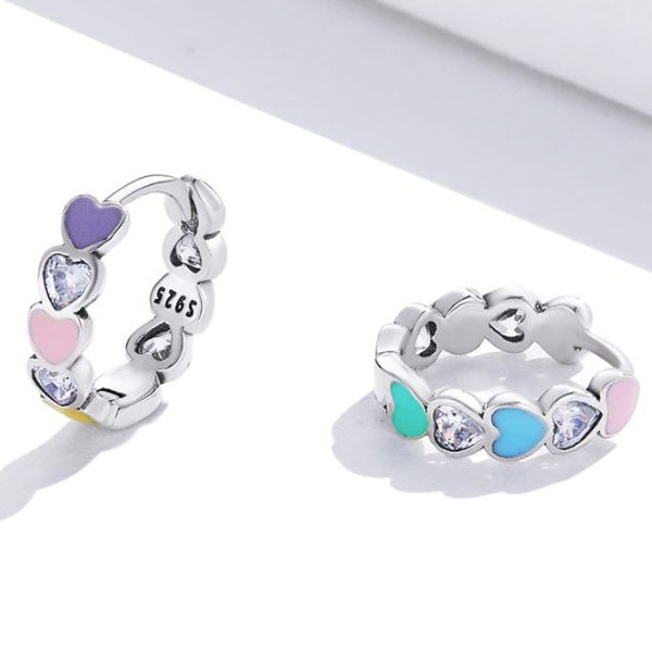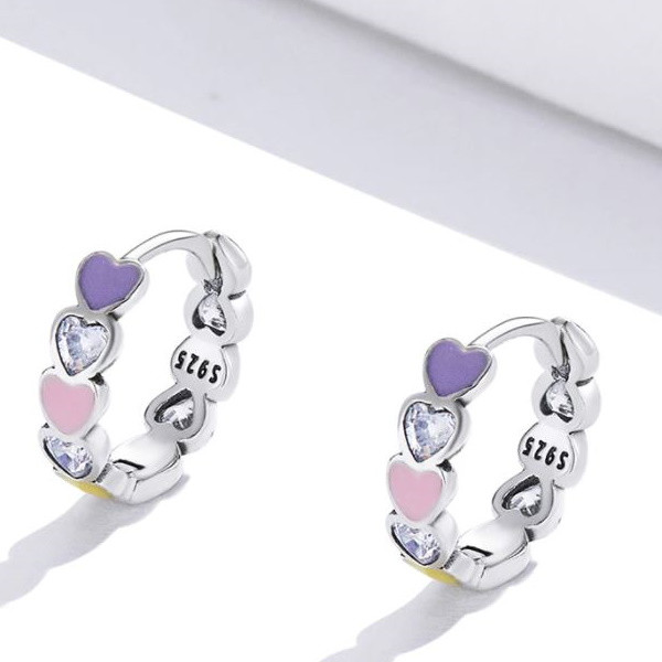 Dámske náušnice, strieborné, s farebnými srdiečkami