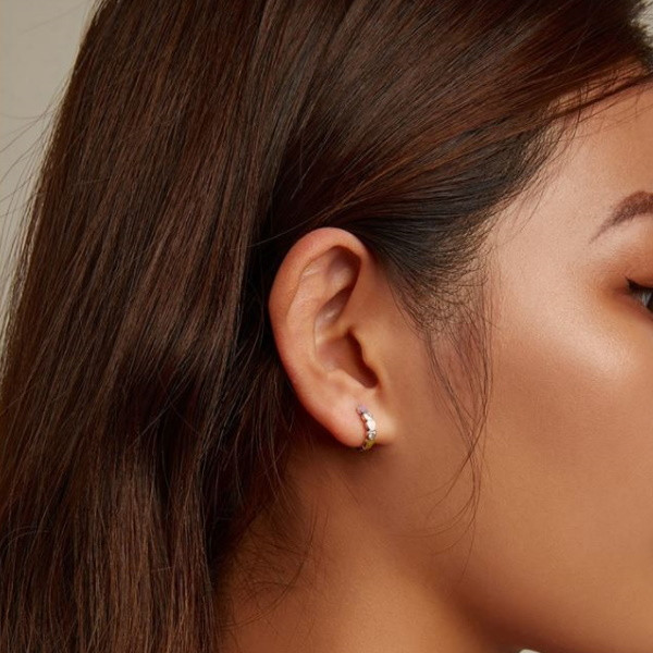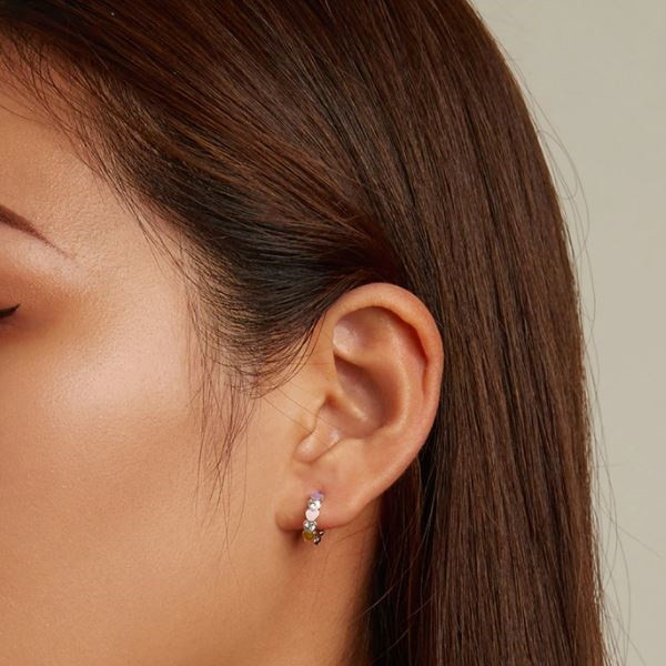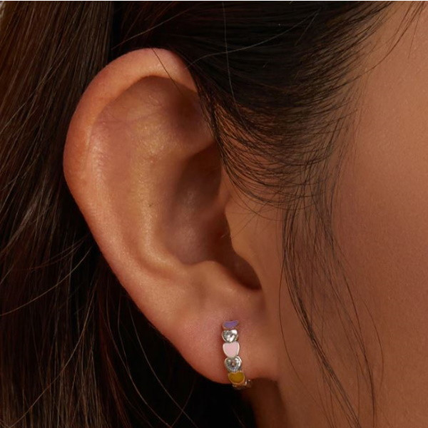 Dámske kruhové náušnice vyrobené zo striebra zdobené farebným smaltom a zirkónovými kamienkami. Veľkosť 1,2 × 0,3 cm, váha 1,6 g.