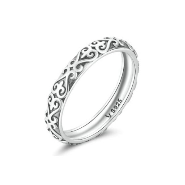 Dámsky prsteň vo vintage štýle vyrobený zo striebra. Hrúbka 0,3 cm, váha 1,7 g.