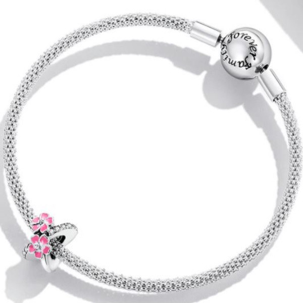 Vyrobené zo striebra, zdobené ružovými kvetmi a zirkónovým kryštálom, na náramku a náhrdelníku. Jeho rozmer je 1,0 × 0,7 cm, priemer otvoru je 0,45 cm. Hmotnosť 1,7 g Prívesok je kompatibilný s náramkami typu Pandora a Pandora.