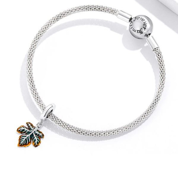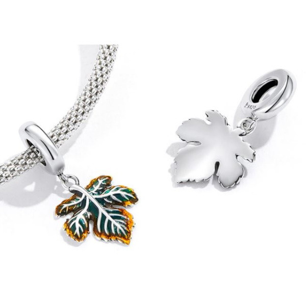 Prívesok zo striebra znázorňujúci list stromu na náramky a náhrdelníky. Jeho rozmer je 1,2 × 2,3 cm, priemer otvoru na háčik je 0,8 cm. Hmotnosť 1,3 g Prívesok je kompatibilný s náramkami typu Pandora a Pandora.