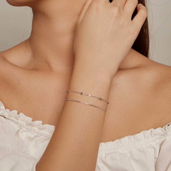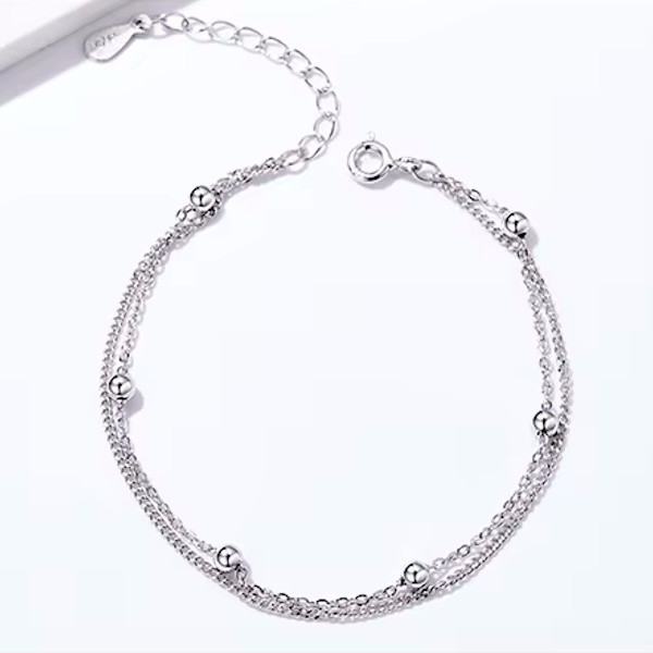 Ez a kifinomult, 925 sterling ezüstből készült dupla karkötő tökéletes választás mindennapi viseletre és különleges alkalmakra egyaránt. A platinabevonat elegáns csillogást kölcsönöz neki, amely minden női csuklón elegánsan mutat. A karkötő központi motívuma a kör, amely az örökkévalóságot és a teljes harmóniát szimbolizálja – remek választás, ha egyensúlyt szeretnél vinni az életedbe, vagy egy különleges kapcsolatot ünnepelnél.