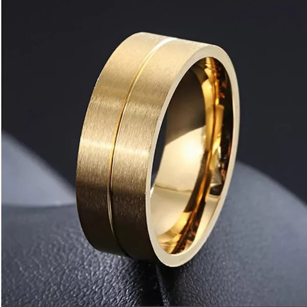Jednoduchý, no elegantný pánsky svadobný prsteň vyrobený z nerezovej ocele. Jeho šírka je 8 mm.