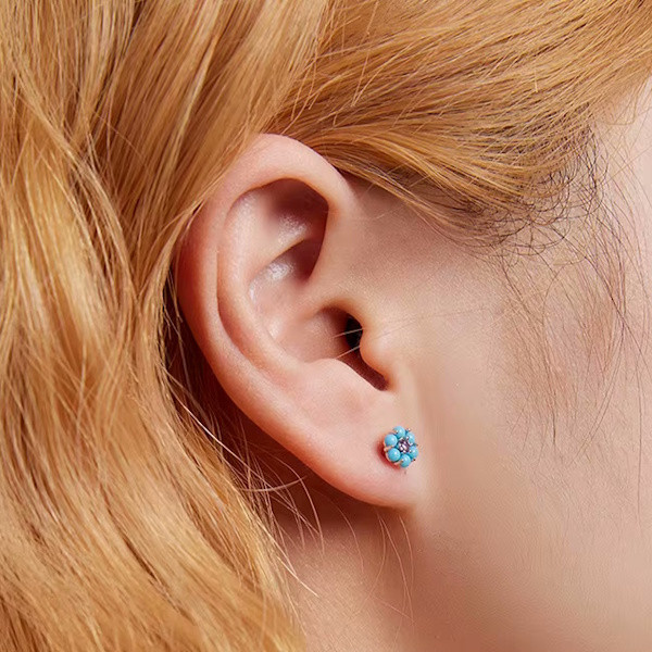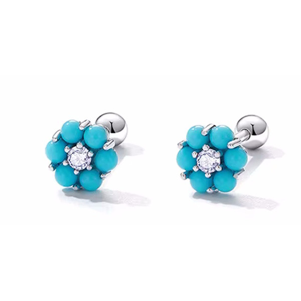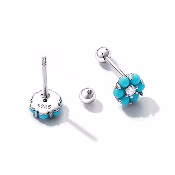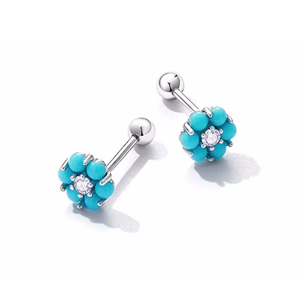 Fedezd fel a természet ihlette eleganciát ezzel a gyönyörű, virág alakú ezüst fülbevalóval! A 925 sterling ezüstből készült ékszer finom részletei és a középen elhelyezkedő türkiz kő varázslatosan tükrözik a természet szépségét. A cirkóniával díszített szirmok káprázatosan csillognak, így minden pillantást magukra vonzanak.
