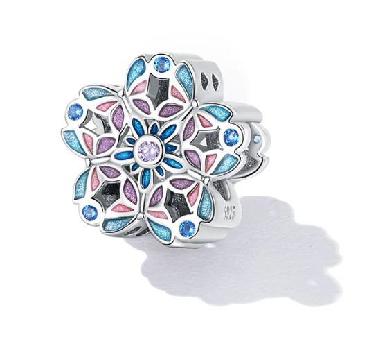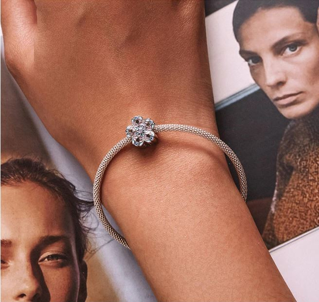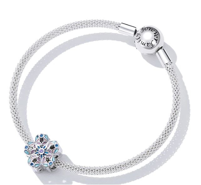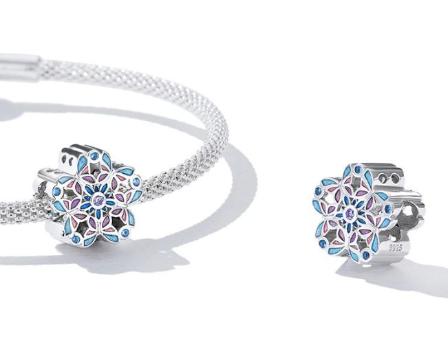 Vyrobené zo striebra, zdobené farebným smaltom a zirkónovým kryštálom, na náramku a náhrdelníku. Veľkosť 1,2 × 1,2 cm, váha 2,3 g. Prívesok je kompatibilný s náramkami typu Pandora a Pandora.