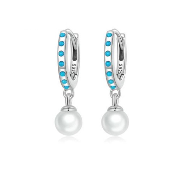 Strieborné náušnice s perlami, tyrkysové