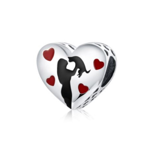 Prívesok v tvare srdca zo striebra zdobený červenými srdiečkami a mačičkou. Dá sa nosiť na náramku alebo náhrdelníku. Prívesok je kompatibilný s náramkami typu Pandora a Pandora.
