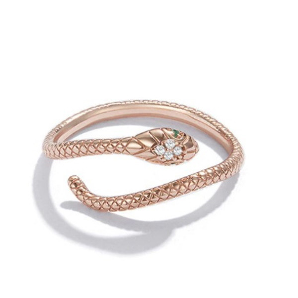 Strieborný prsteň, had, ružové zlato