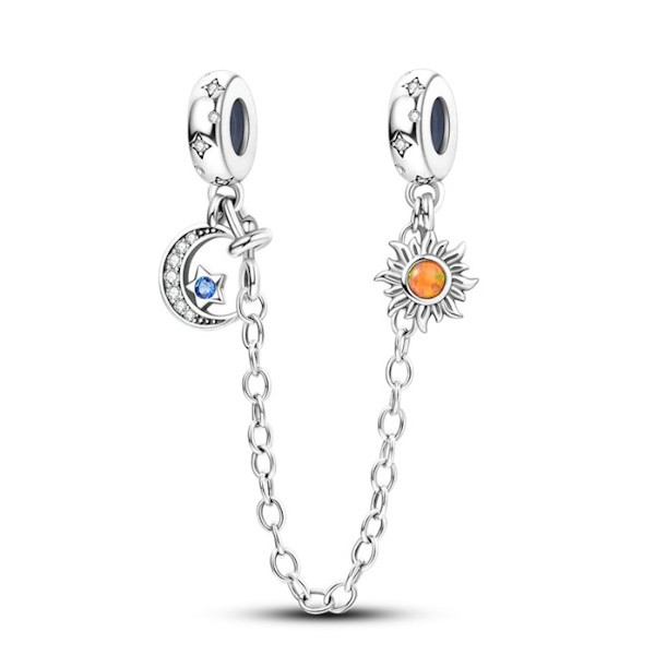 Vyrobené zo striebra, zdobené zirkónovým kryštálom, s bezpečnostnou retiazkou. Dĺžka retiazky je 60 mm, výška Mesiaca 9,3 mm, výška Slnka 8,4 mm.