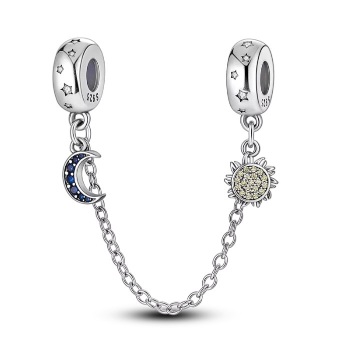 Vyrobené zo striebra, zdobené zirkónovým kryštálom, s bezpečnostnou retiazkou. Dĺžka retiazky je 65,8 mm, Mesiac 7,8 × 6,4 mm, výška Slnka 7,4 mm.