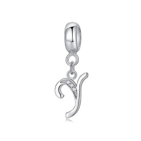 Prívesok zo striebra s vyobrazením písmena Y na náramky a náhrdelníky. Veľkosť 2 × 1 cm, váha 0,8 g Veľkosť otvoru je 0,45 cm podľa toho je kompatibilný s náramkami Pandora a Pandora: v prípade produktu nad 2g vyrazené alebo vygravírované meno a/alebo punc výrobok potvrdzuje. Oddelením testované 925 jemné striebro s vlastným menom a/alebo puncom. Registračné číslo licencie našej spoločnosti na distribúciu drahých kovov: PR7959.