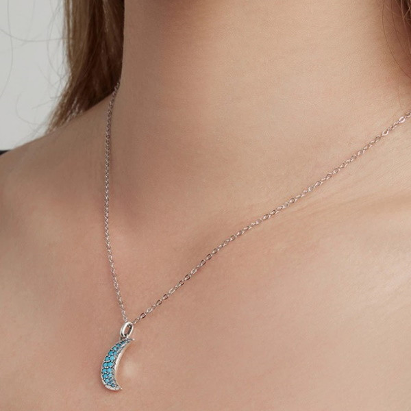 Strieborný náhrdelník s tyrkysovým príveskom mesiaca