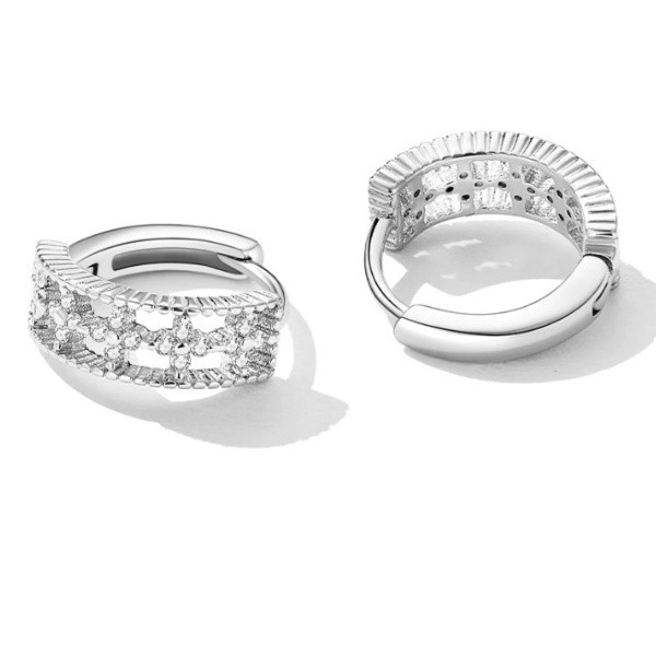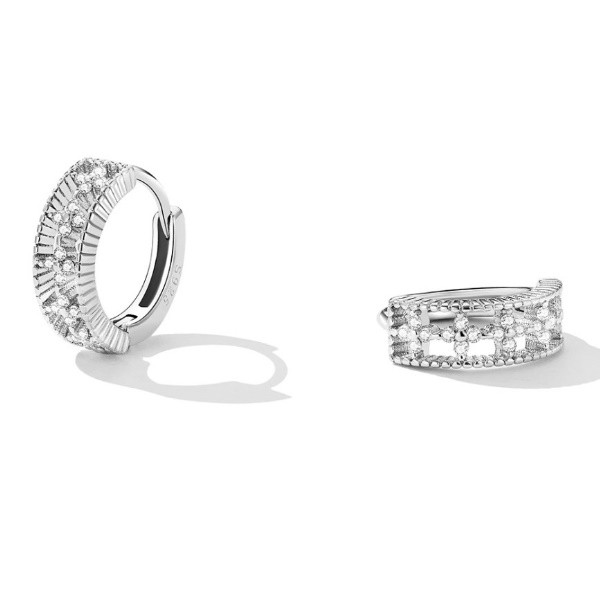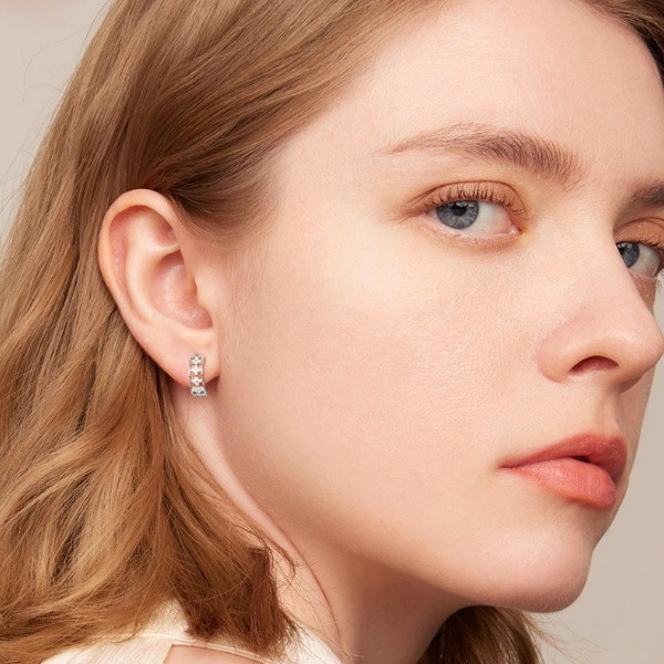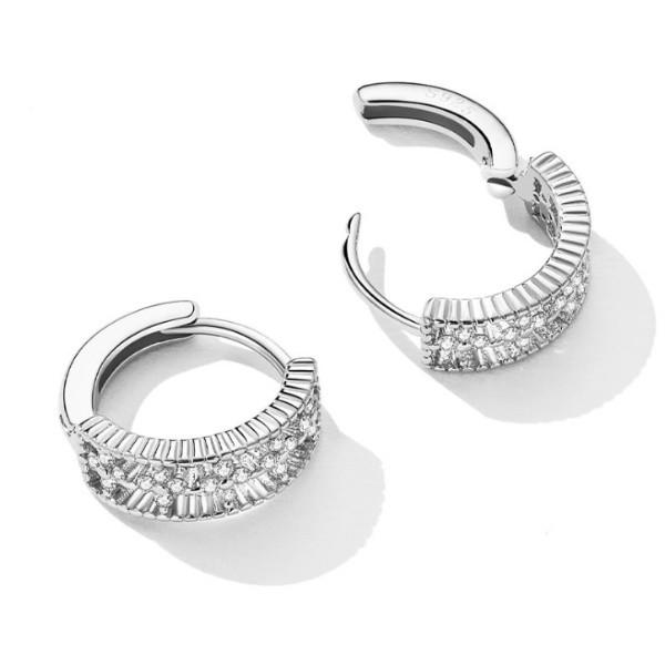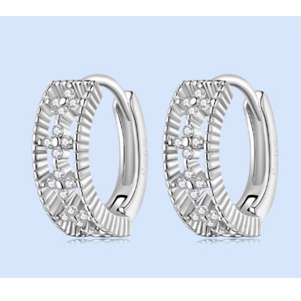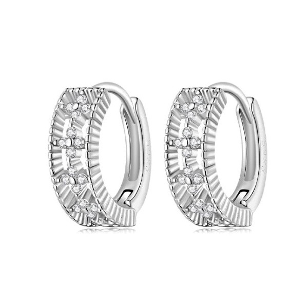 Náušnice klasického štýlu vyrobené zo striebra s bielym zirkónovým kryštálom. Veľkosť 1,2 × 0,4 cm, váha 1,6 g.