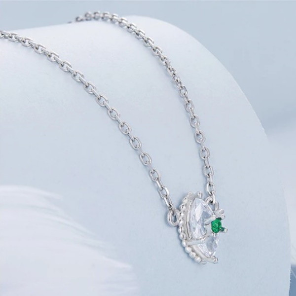 Náhrdelník vyrobený zo striebra, s príveskom v tvare kvapky zdobený zeleným zirkónovým kryštálom. Retiazka je dlhá 43,5 cm a váži 1,7 g. Veľkosť prívesku je 0,8 × 0,5 cm.