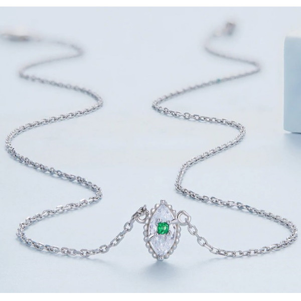 Strieborný náhrdelník so zeleným kryštálom