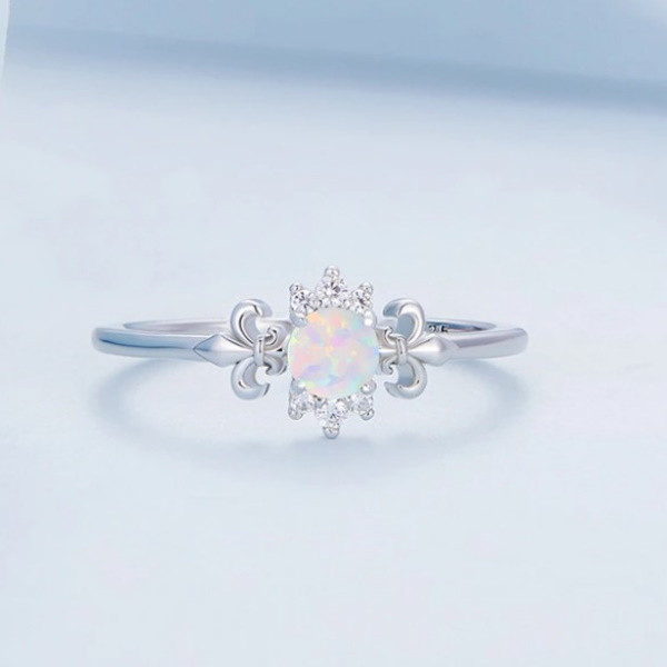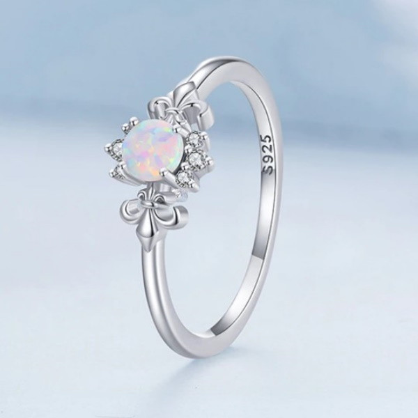 Dámsky prsteň vyrobený zo striebra, zdobený opálom. Hrúbka 0,12 cm, váha 1,3 g.