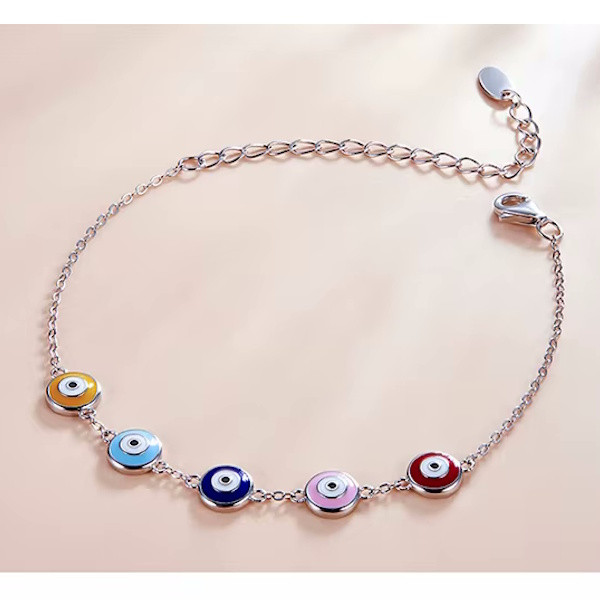 Ez a lenyűgöző ezüst karkötő tökéletes választás minden divatkedvelő számára, aki szereti a modern és egyedi ékszereket. A 925-ös sterling ezüstből készült karkötőt színes zománcozás díszíti, amely még különlegesebbé teszi. A karkötőn található szem motívum évszázadok óta az őrzés és védelem jelképe. Az őrző szemek az ókori kultúrákban is gyakran előfordultak, mint a rossz energiák elleni amulettek, így viselése nemcsak stílusos, hanem szimbolikus is.