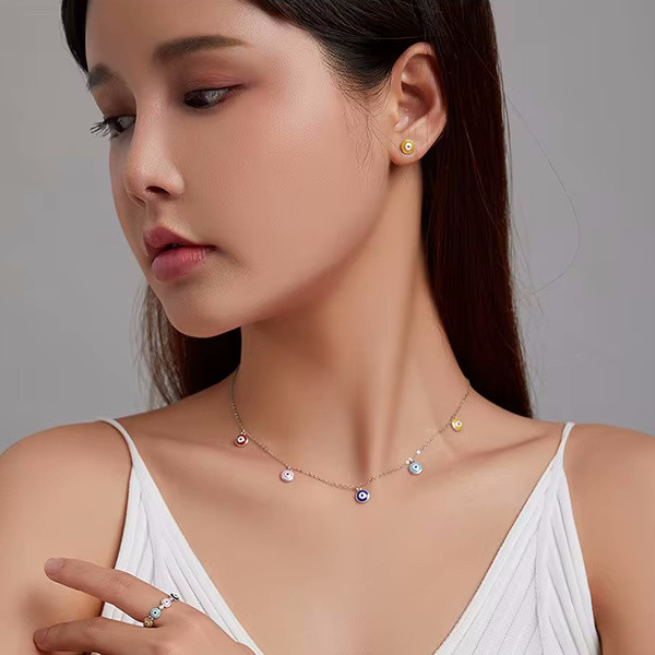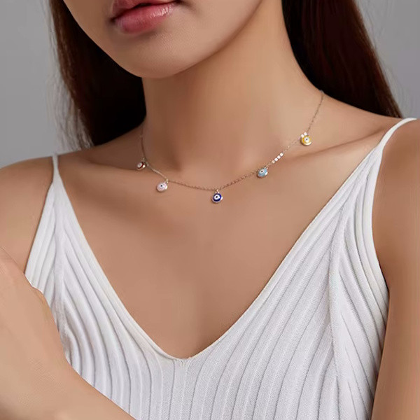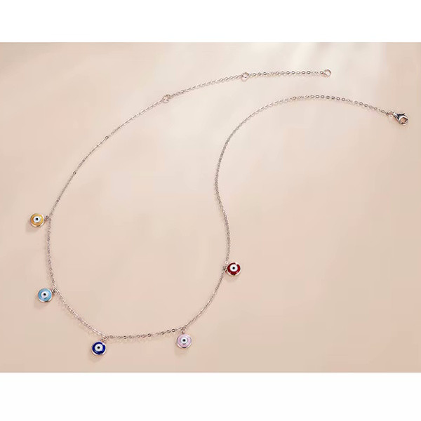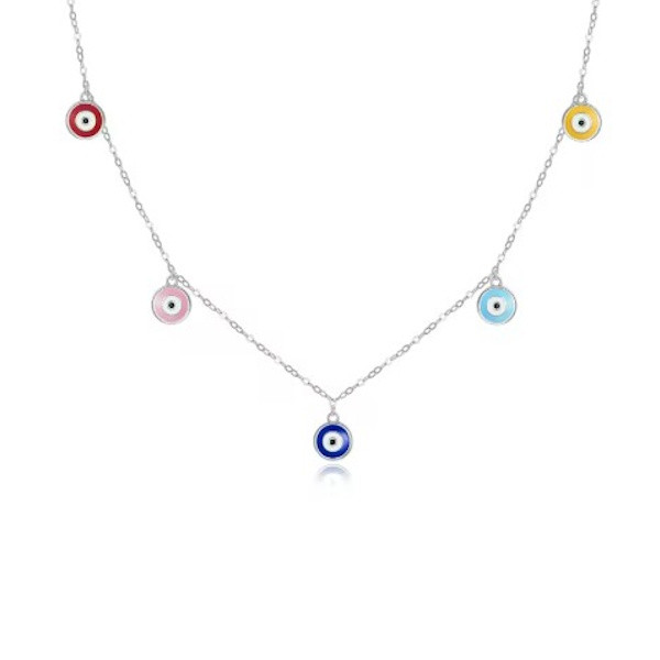 Engedd, hogy ez az elegáns ezüst nyaklánc, amelyet színes, őrző szemek díszítenek, a mindennapjaid részévé váljon. A 925 sterling ezüstből készült ékszer finom csillogása tökéletesen kiegészíti bármilyen öltözéked, legyen szó akár egy hétköznapi viseletről vagy különleges alkalomról. Az őrző szem motívum az ókor óta ismert, mint a védelem és a szerencse szimbóluma, amely megóvja viselőjét a negatív energiáktól és bajoktól. A 37+3.7+3.7 cm-es hosszúságú lánc kényelmes viseletet biztosít, míg a 2.6 grammos súlyának köszönhetően alig észrevehető, így egész nap viselheted. Ideális ajándék lehet szeretteidnek, akik hisznek a szimbólumok erejében, vagy egyszerűen csak kedvelik a különleges, egyedi ékszereket. Engedd, hogy ez a nyaklánc különleges védelmező kísérőd legyen a mindennapokban.