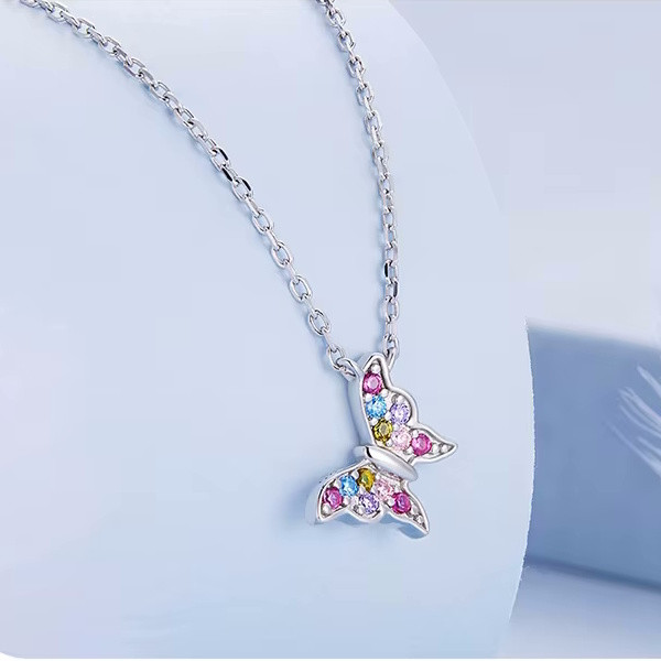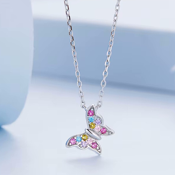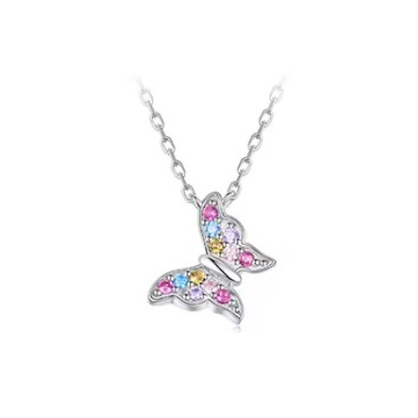 Ez a káprázatos ezüst nyaklánc színes pillangó motívummal igazi különlegesség minden ékszerkollekcióban. A finom 925 sterling ezüst alapanyag és a platinabevonat kombinációja elegáns megjelenést kölcsönöz, miközben a színes cirkóniumkristályokkal díszített pillangómedál játékos színt visz a mindennapokba. A pillangó a szabadság, az átalakulás és az újjászületés szimbóluma, így viselése pozitív energiát sugároz. A 42,5 cm hosszú lánc kényelmes viseletet biztosít, a könnyed, 1,9 g súly pedig alig érezhető a nyakon. A medál 1,1×1,1 cm-es mérete éppen ideális ahhoz, hogy finoman felhívja magára a figyelmet. Kitűnő választás ajándéknak is, akár születésnapra, akár különleges alkalmakra, hiszen mindenki örömmel viselne egy ilyen gyönyörű, jelentéssel teli ékszert.