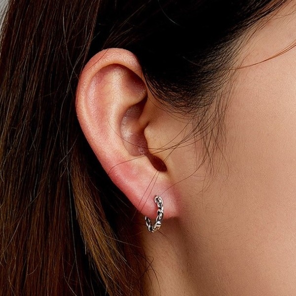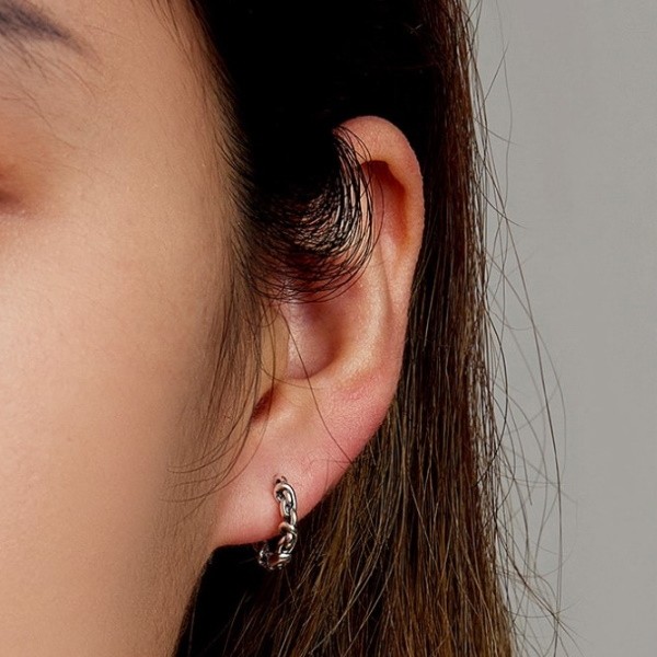 Dámske náušnice zo striebra imitujúce retiazkové očká. Veľkosť 1,2 × 0,2 cm, váha 1,6 g.