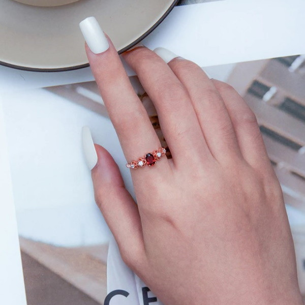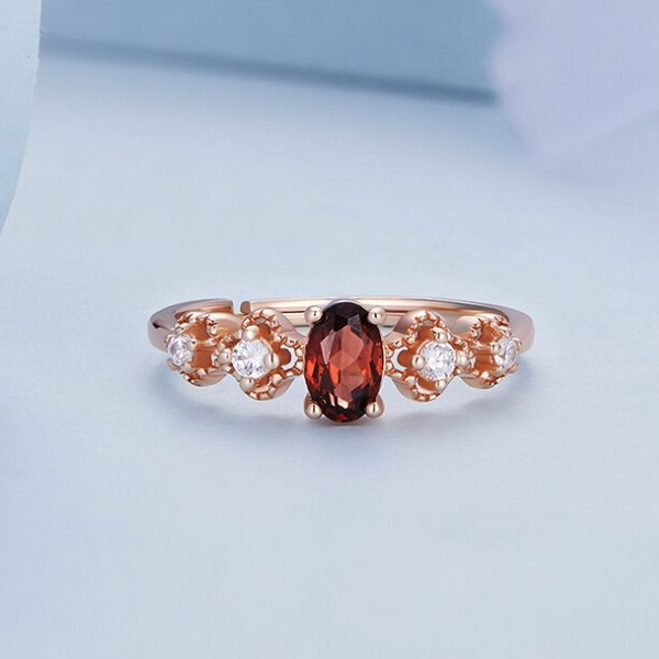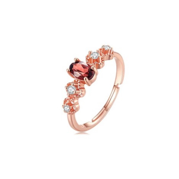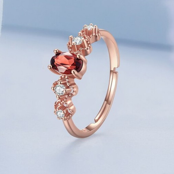 Strieborný dámsky prsteň s červeným granátom, nastaviteľná veľkosť