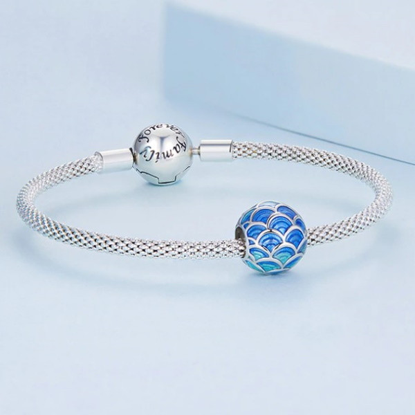 Vyrobené zo striebra, zdobené modrým smaltom, na prívesný náramok a náhrdelník. Veľkosť 1,1 × 1,0 cm, váha 2 g. Priemer otvoru je 0,45 cm. Prívesok je kompatibilný s náramkami typu Pandora a Pandora.