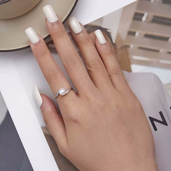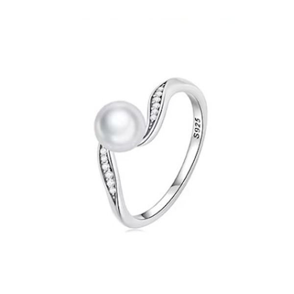 Ezüst gyűrű fehér gyönggyel, 6-os méret