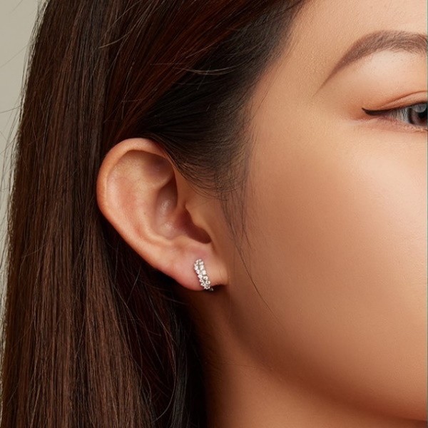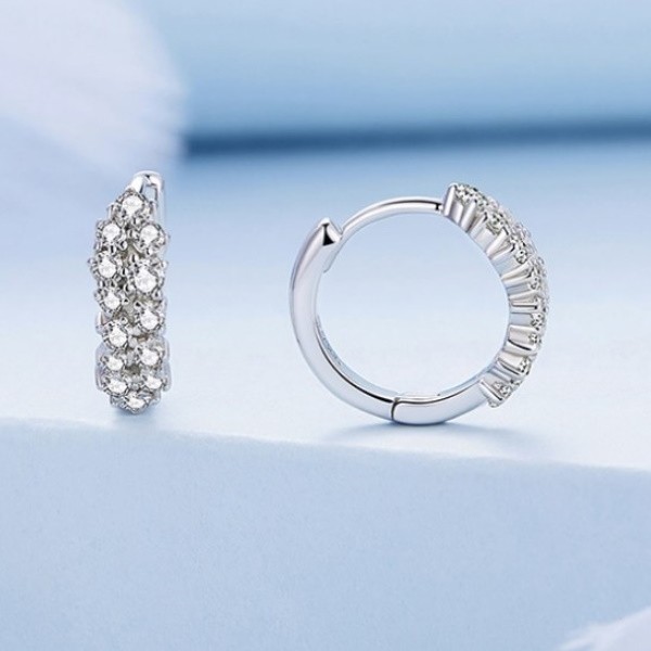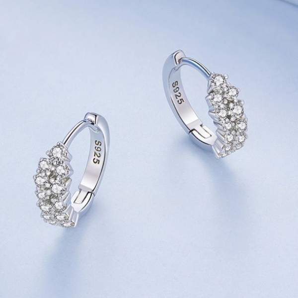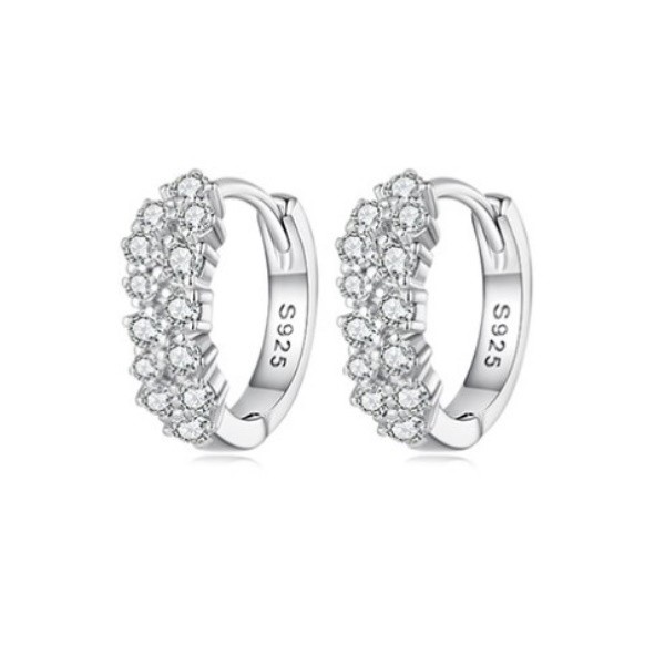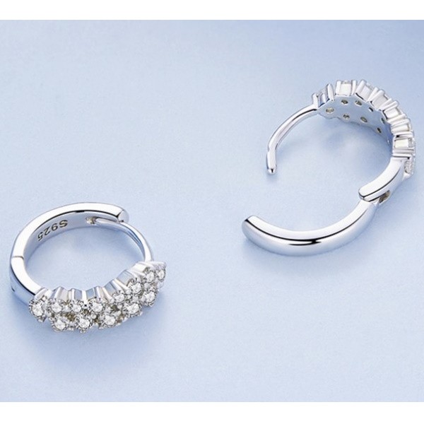 Dámske náušnice vyrobené zo striebra, zdobené bielymi kryštálmi zirkónu. Veľkosť 1,2 × 0,45 cm, váha 1,9 g.