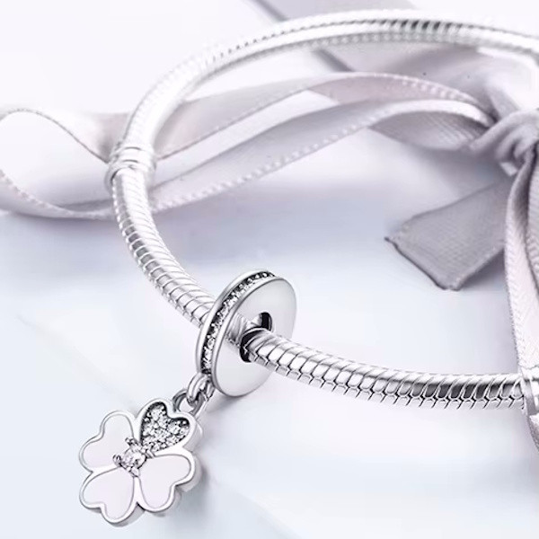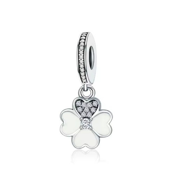 Ez az elegáns ezüst charm egyedi megjelenést kölcsönöz mindennapi viseletednek. A finom 925 sterling ezüst alapanyagból készült lóhere mintájú díszítés csillogó cirkóniumkristályokkal van kirakva, amelyek káprázatos fényt sugároznak. Tökéletes kiegészítője lehet kedvenc karkötődnek vagy nyakláncodnak, így bármilyen alkalomra stílusos választás.