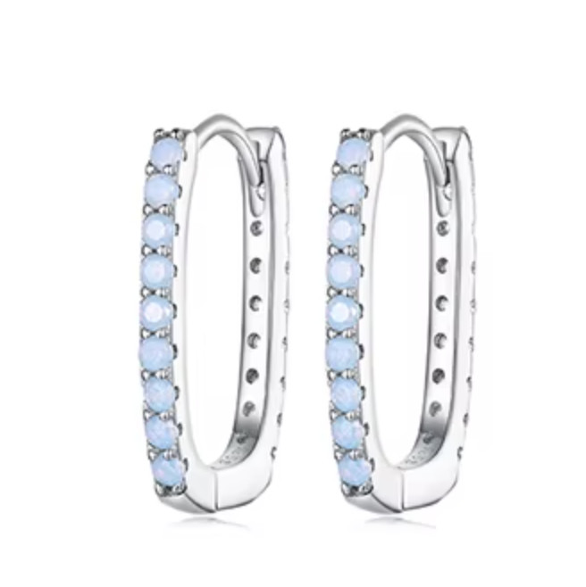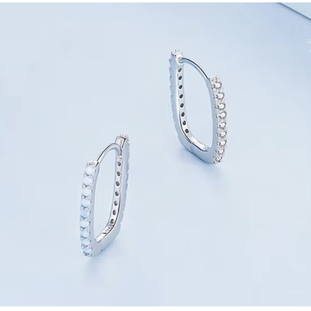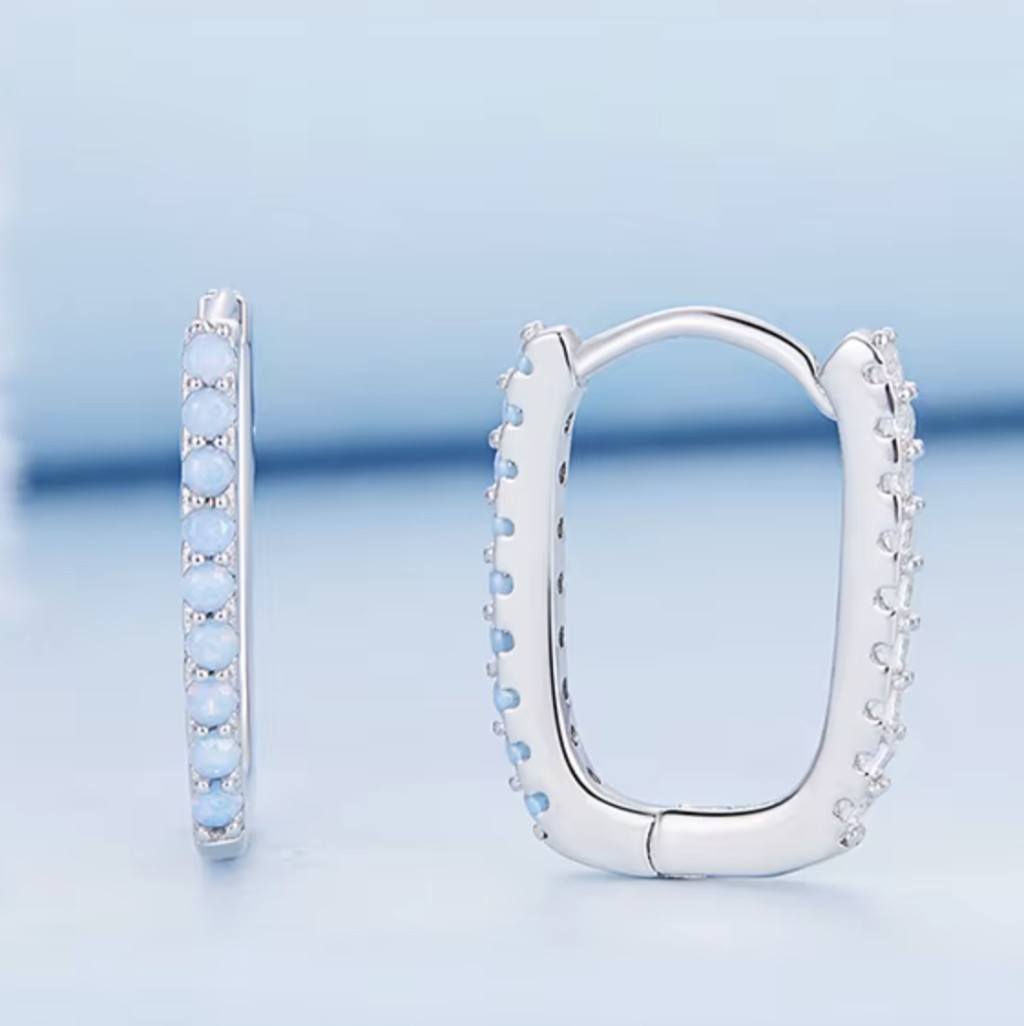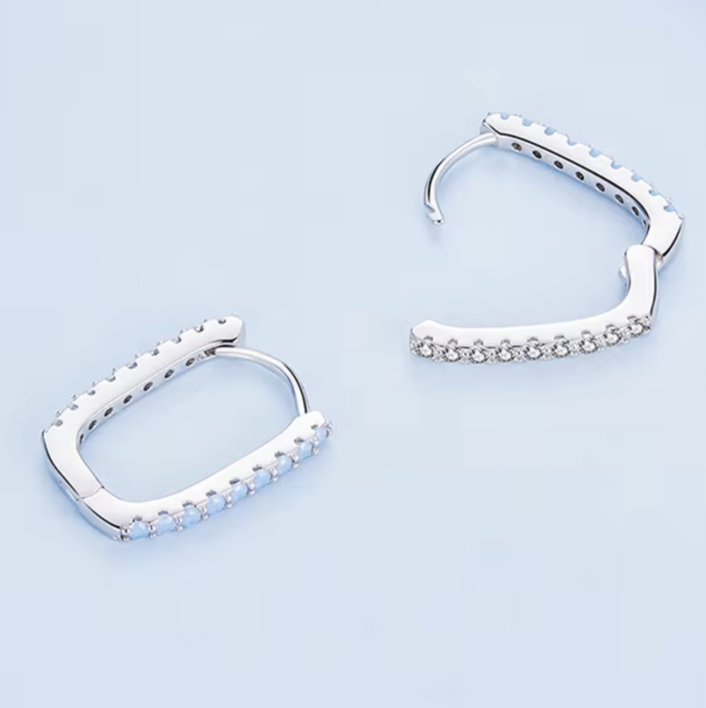 Fedezd fel az elegancia és a modern stílus tökéletes harmóniáját ezzel az ezüst fülbevalóval! A 925 sterling ezüst alapanyag biztosítja az időtálló minőséget, míg az opálkék kristályok ragyogó megjelenést kölcsönöznek. A geometrikus, négyzet alakú formavilág elegáns, mégis feltűnő kiegészítővé teszi ezt a darabot, amely bármilyen alkalomra ideális választás.