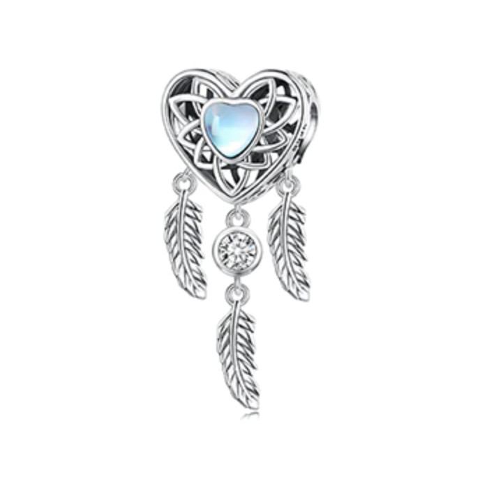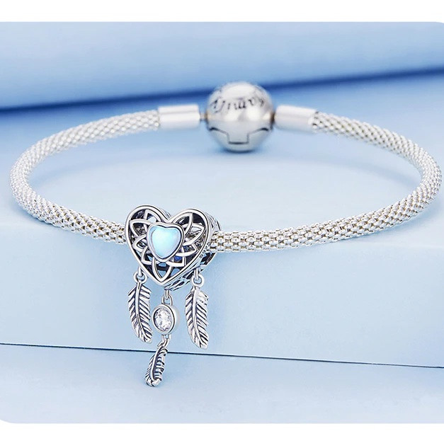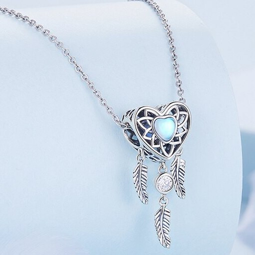 Prívesok z jemného striebra 925, srdce lapač snov, zdobený modrým kryštálom.