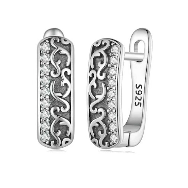 Ez a gyönyörű, vintage stílusú ezüst fülbevaló egy igazi klasszikus kiegészítő, amely bármilyen öltözékedet elegánssá varázsolja. A 925 sterling ezüstből készült fülbevaló aprólékos kidolgozással és csillogó cirkóniumkristályokkal díszített, melyek elbűvölő fényt kölcsönöznek neki. A kör alakú dizájn időtlen eleganciát sugall, ami sosem megy ki a divatból.