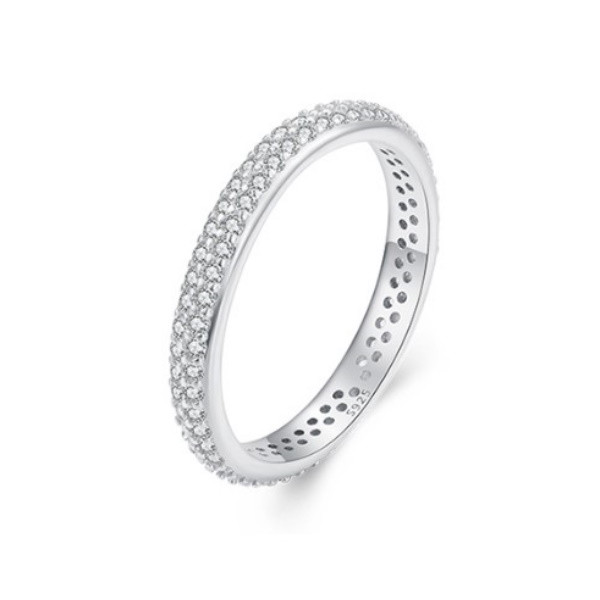Dámsky prsteň jednoduchej línie vyrobený zo striebra, zdobený zirkónovým kryštálom. Jeho hrúbka je 0,25 cm, hmotnosť 1,5 g.