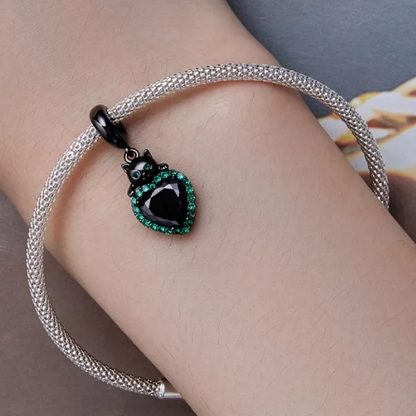 Vyrobené zo striebra, zdobené zeleným zirkónovým kryštálom, na ozdobný náramok a náhrdelník. Veľkosť 2,6 × 1,0 cm, váha 2,8 g. Priemer otvoru je 0,45 cm.