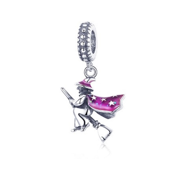 Prívesok zo striebra znázorňujúci čarodejnicu na náramky a náhrdelníky.