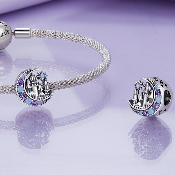 Vyrobené zo striebra, zdobené zirkónovým kryštálom a opálom, zobrazujúce mesačný hrad na náramku a náhrdelníku. Veľkosť 0,12 × 0,11 cm, váha 2,3 g. Veľkosť otvoru je 0,45 cm.