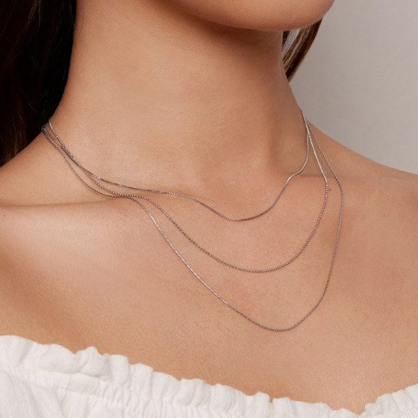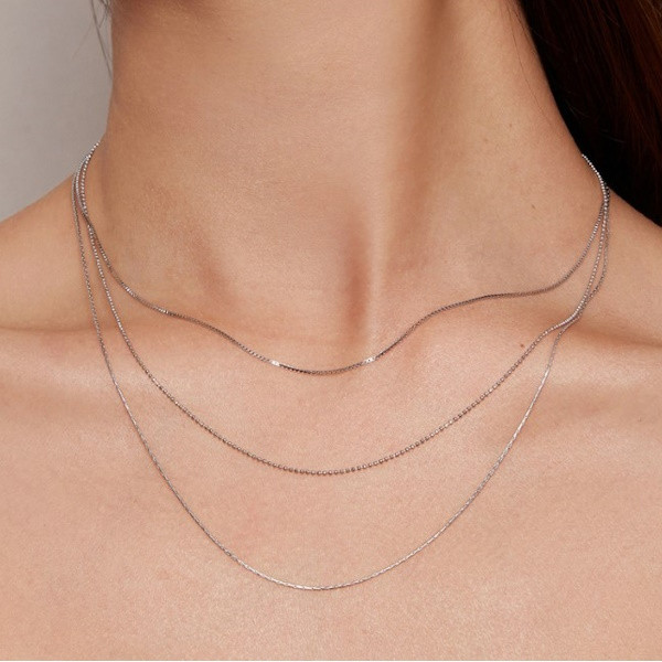 Strieborný náhrdelník vyrobený z troch prameňov. Veľkosť vnútorného kruhu je 39 + 5 cm, stredného 41 + 5 cm, vonkajšieho 47 + 5 cm. Váha náhrdelníka je 4,8g.