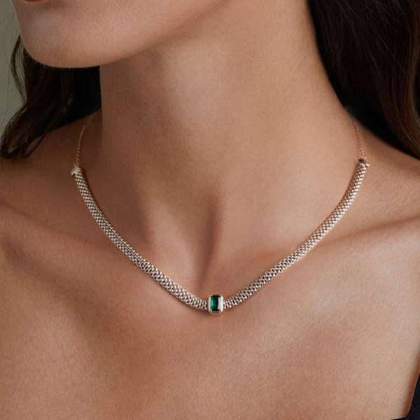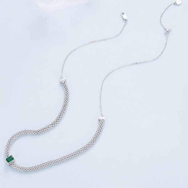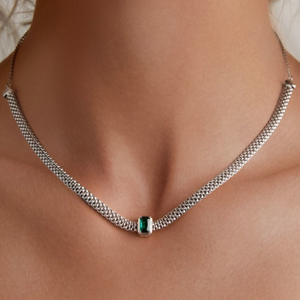 Retro štýlový náhrdelník vyrobený zo striebra so zeleným zirkónovým kryštálom. Dĺžka 4,40 cm, váha 7,8 g.