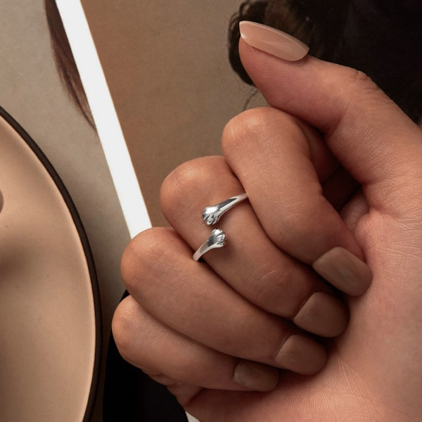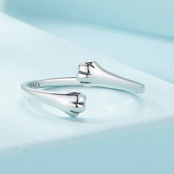 Dámsky prsteň zo striebra v tvare mačacích labiek, nastaviteľná veľkosť. Jeho šírka je 1,6 mm, hmotnosť 1,8 g.
