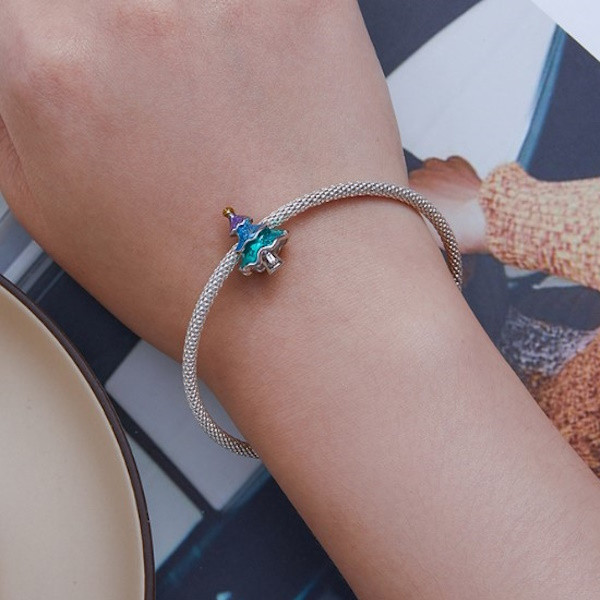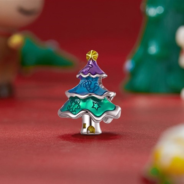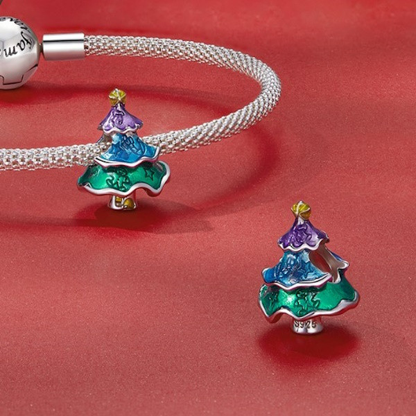 Vyrobené zo striebra, zobrazujúce farebný vianočný stromček na kúzelný náramok a náhrdelník. Veľkosť 1,6 × 1,2 cm, váha 2,6 g.