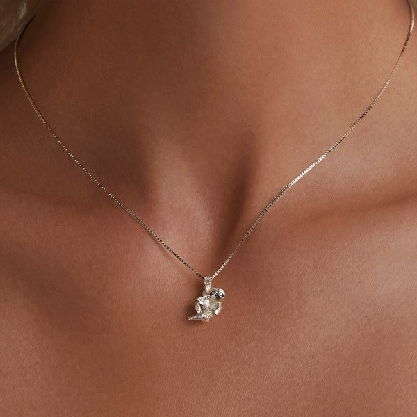 Náhrdelník vyrobený zo striebra, s príveskom zobrazujúcim leňochoda zdobený zirkónovým kryštálom. Dĺžka retiazky je 40,0 + 5,0 cm, váha 3,9 g. Veľkosť prívesku je 1,5 × 1,0 cm.