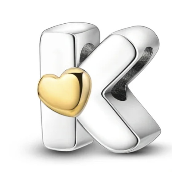 Prívesok znázorňujúci písmeno vyrobené zo striebra 925, zdobené zlatým srdiečkom.