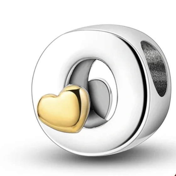 Prívesok znázorňujúci písmeno vyrobené zo striebra 925, zdobené zlatým srdiečkom.