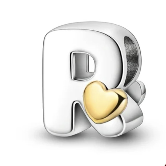 Strieborný list so srdiečkom, písmeno R