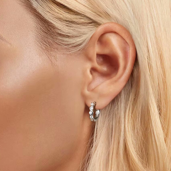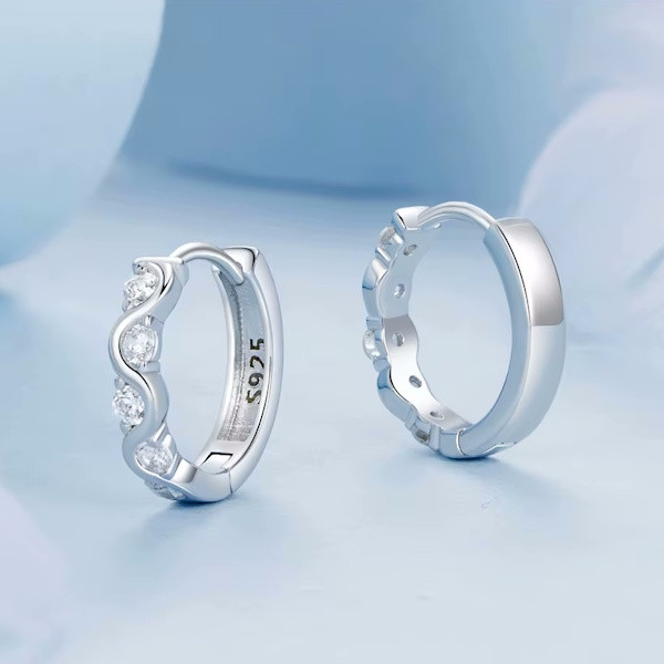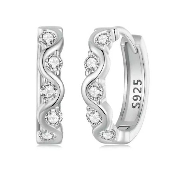 Ez a káprázatos ezüst fülbevaló tökéletes választás, ha eleganciát és finom részleteket keresel a kiegészítőid között. A 925 sterling ezüstből készült ékszer cirkóniumkristályokkal van díszítve, amelyek ragyogóan csillognak minden pillantásban. A fülbevaló hullámos mintája modern megjelenést kölcsönöz, miközben a kör alakú forma időtlen stílust sugall.