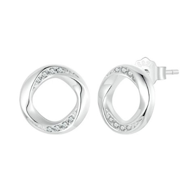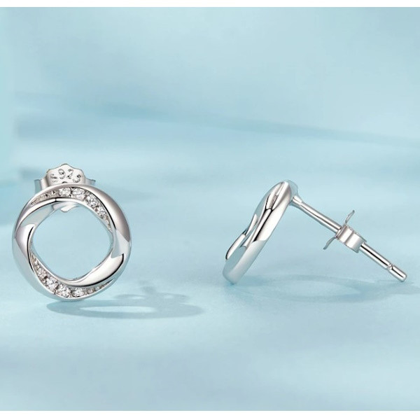 Dámske náušnice vyrobené zo striebra, zdobené bielymi kryštálmi zirkónu. Veľkosť 9×9 mm, váha 1,4 g.