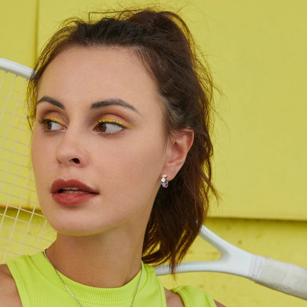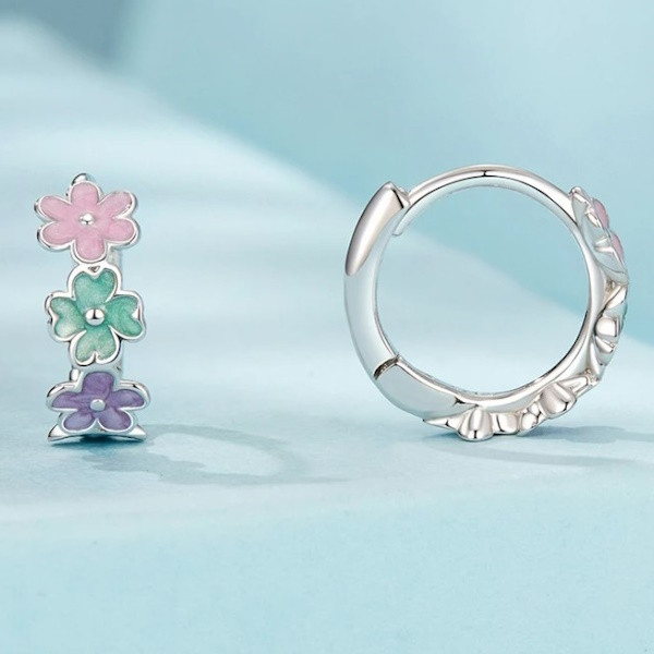 Dámske kruhové náušnice vyrobené zo striebra, zdobené farebným smaltom. Veľkosť 11×4 mm, váha 1,4 g.