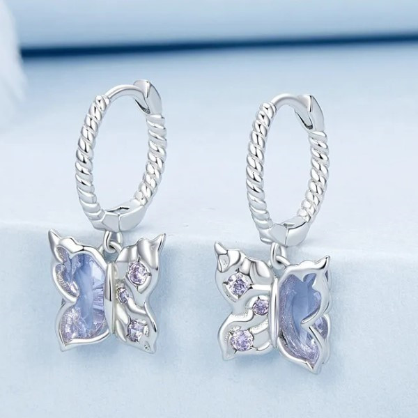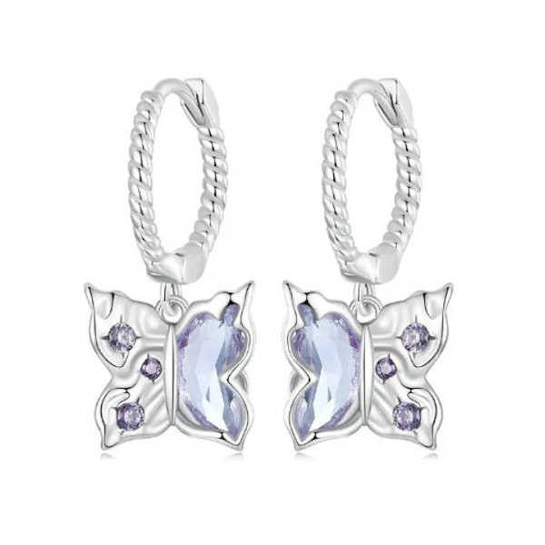 Strieborné náušnice, motýľ