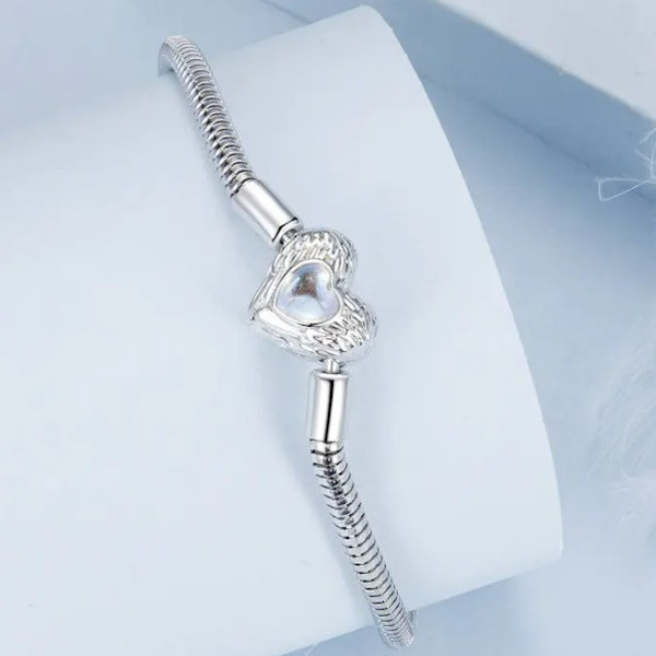 Strieborný náramok s mesačným kameňom, 17 cm